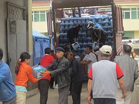 向地震災(zāi)民發(fā)放賑災(zāi)物資